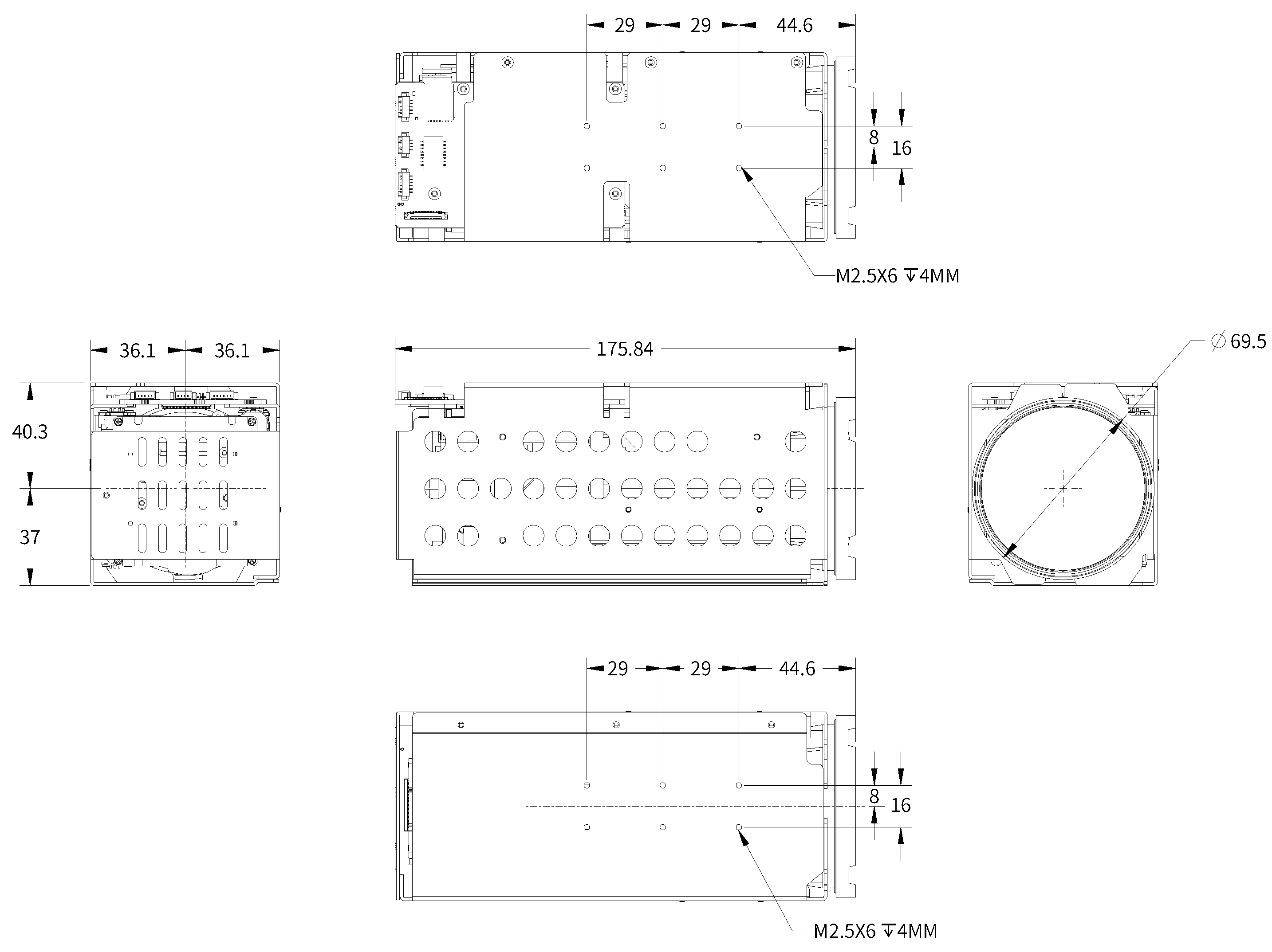 4Pin Ethernet Port, 6pin Power & Uart Port, 5Pin Audio Port. 30pin mipi |